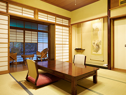 We are proud to offer various types of guestrooms in Japanese style to suit your taste. You can refresh yourself with sounds of stream and the negative ions that are omitted.