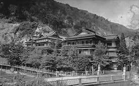 当時としては珍しい団体客を収容できる大型旅館として賑わった大正時代の環翠楼の様子