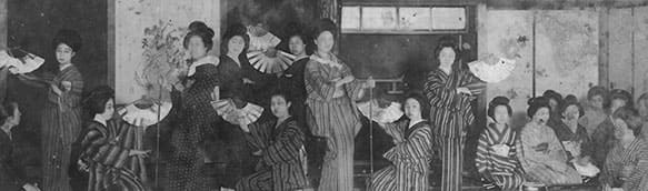 接客のために訪れた箱根の芸妓さん。大広間での宴会時には欠かせない役割を担った。(大正末期頃)